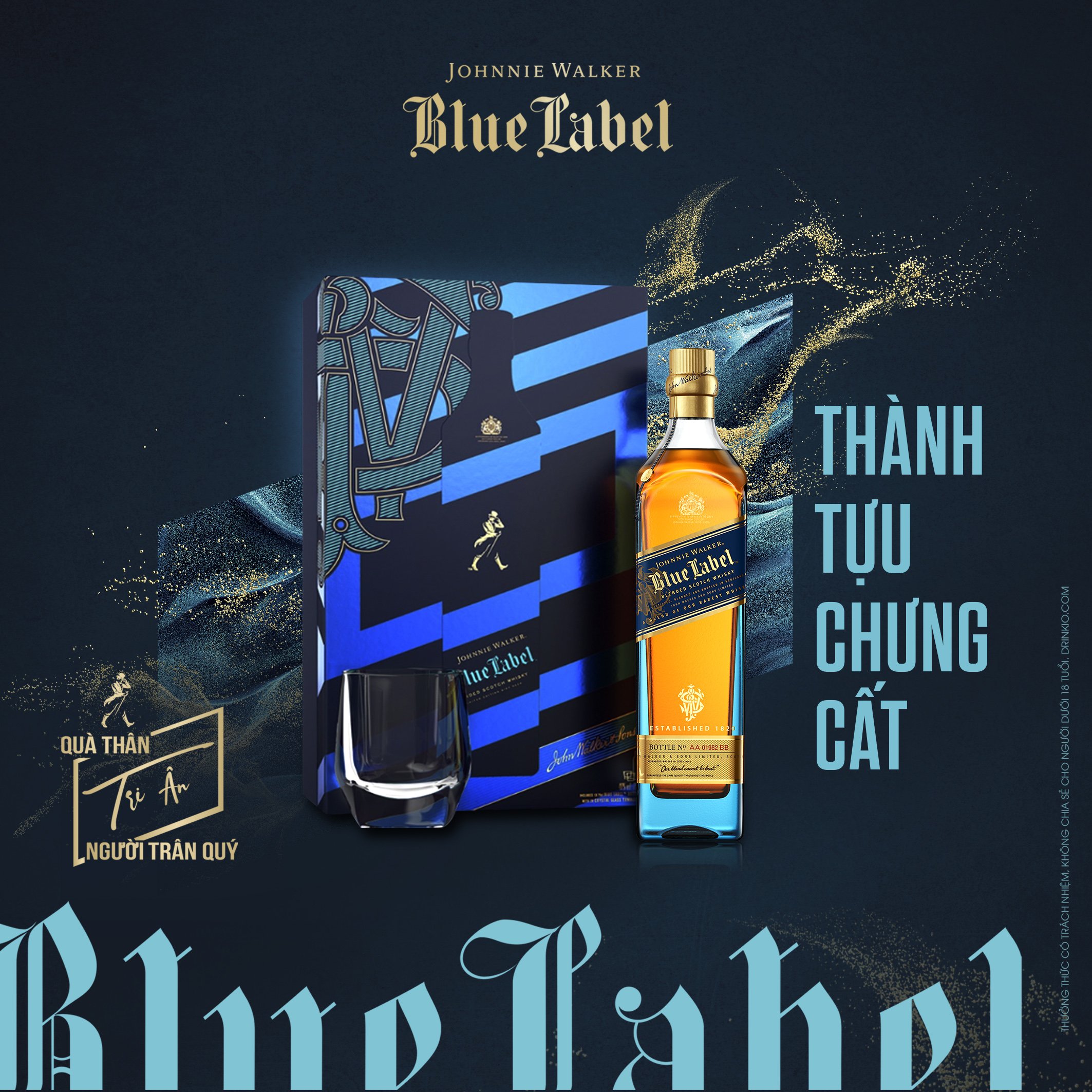 Ngay từ lần đầu tiên ra mắt vào năm 1992, Johnnie Walker Blue Label đã thay đổi hoàn toàn cuộc chơi của Scotch Whisky xa xỉ để nắm giữ danh hiệu chai whisky trọn vẹn và tuyệt hảo nhất. Chất lượng thượng hạng của Johnnie Walker Blue Label nằm trong những thùng gỗ sồi cao cấp, được tuyển chọn khắt khe, với tỉ lệ 1 trên 10.000 thùng để ra được hương vị chuẩn xác. Johnnie Walker Blue Label khai mở chiều sâu hương vị, từ mùi hương tròn đầy kích thích đầu mũi, đến chất vị cay nồng của gỗ đàn hương, thuốc lá và sô cô la đen ướp trong làn khói thơm, nhè nhẹ dẫn dắt đến cái kết kéo dài cùng khói và tiêu cay, bừng lên như một nốt nhạc cân bằng với toàn bộ phần còn lại.