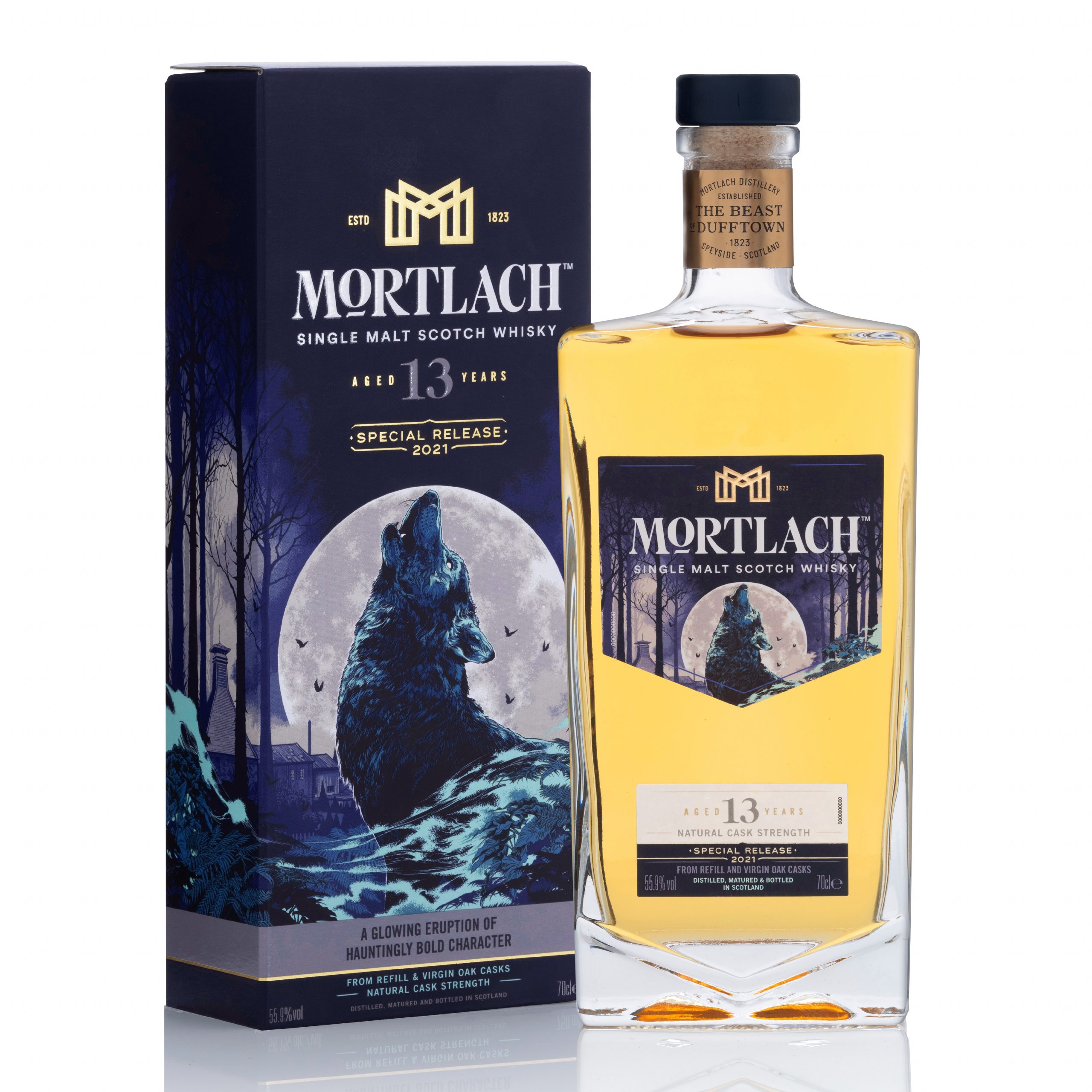 Mortlach, “Quái kiệt vùng Dufftown”, là loài mãnh thú sinh ra dưới bóng trăng tròn với trái tim thuần nguyên nhưng quyết liệt. Mortlach 13 Y.O sở hữu cấu trúc hoàn hảo dưới cá tính nổi bật. Chất vàng sóng sánh của chai có khả năng ru ngủ giác quan bằng hương thơm tròn trịa, êm dịu trước khi bất ngờ đánh thức chúng bằng hương gỗ dầu tươi cay nồng và một loạt hương vị hấp dẫn khác.